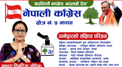 दमक १४, माघ / सुशासन सहितको समुन्नत नेपाल निर्माण गर्ने अभियानमा नेपाली कांग्रेस दृढ संकल्पित रहेको भन्दै दमक नगर कार्यसमितिले पार्टी हितविपरीत गतिविधि गर्नेहरूप्रति कडा कारबाही गर्ने स्पष्ट सन्देश दिएको छ। नेपाली कांग्रेस दमक नगर[ ... ]