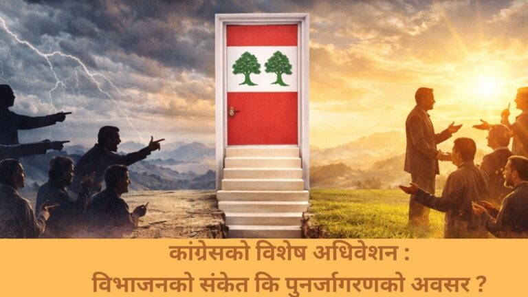 नेपाली कांग्रेस पार्टीको विशेष अधिवेशन पुस २७ र २८ गते काठमाडौँमा हुन लागेको छ। औपचारिक रूपमा नियमित अधिवेशनको संस्थापन पक्षले आव्हान गरेको भनिए पनि, यसको राजनीतिक अर्थ र सन्देश निकै गहिरो छ। यो अधिवेशन केवल संगठनात्मक प्रक्रियाको निरन्तरता मात्र होइन, पार्टीभित्र लामो समयदेखि बढ्दै गएको असन्तुष्टि, मतभेद र दिशाहीनताको प्रतिबिम्ब हो। संस्थापन र असन्तुष्ट पक्षबीच देखिएको स्पष्ट दूरीले कांग्रेस आज दुई ध्रुवमा विभाजित भएको संकेत गर्दछ।
